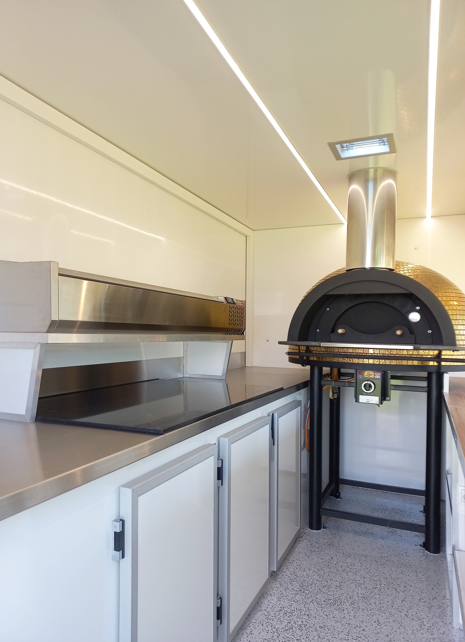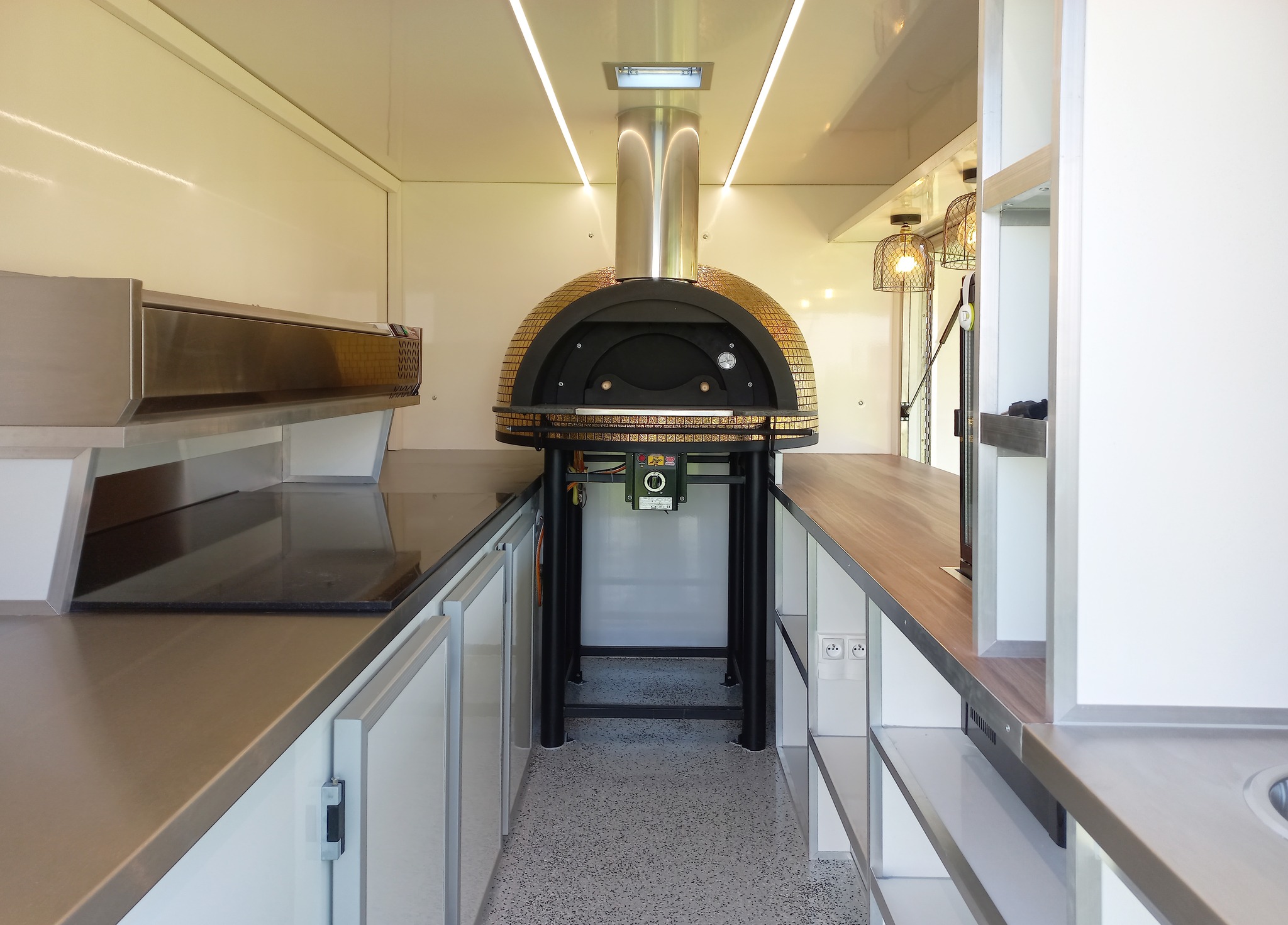 Équipé d’un four performant (bois ou gaz), il est idéal pour préparer des pizzas délicieuses à emporter. Ce véhicule, en état d’occasion mais soigneusement aménagé, garantit une solution pratique pour développer votre activité. Attirez vos clients avec son design rouge vif et engageant. Gagnez en efficacité grâce à son plan de travail spacieux et un éclairage LED pour une visibilité optimale en toutes conditions.