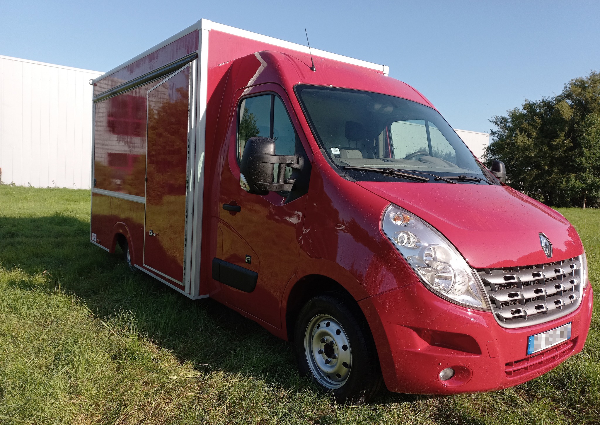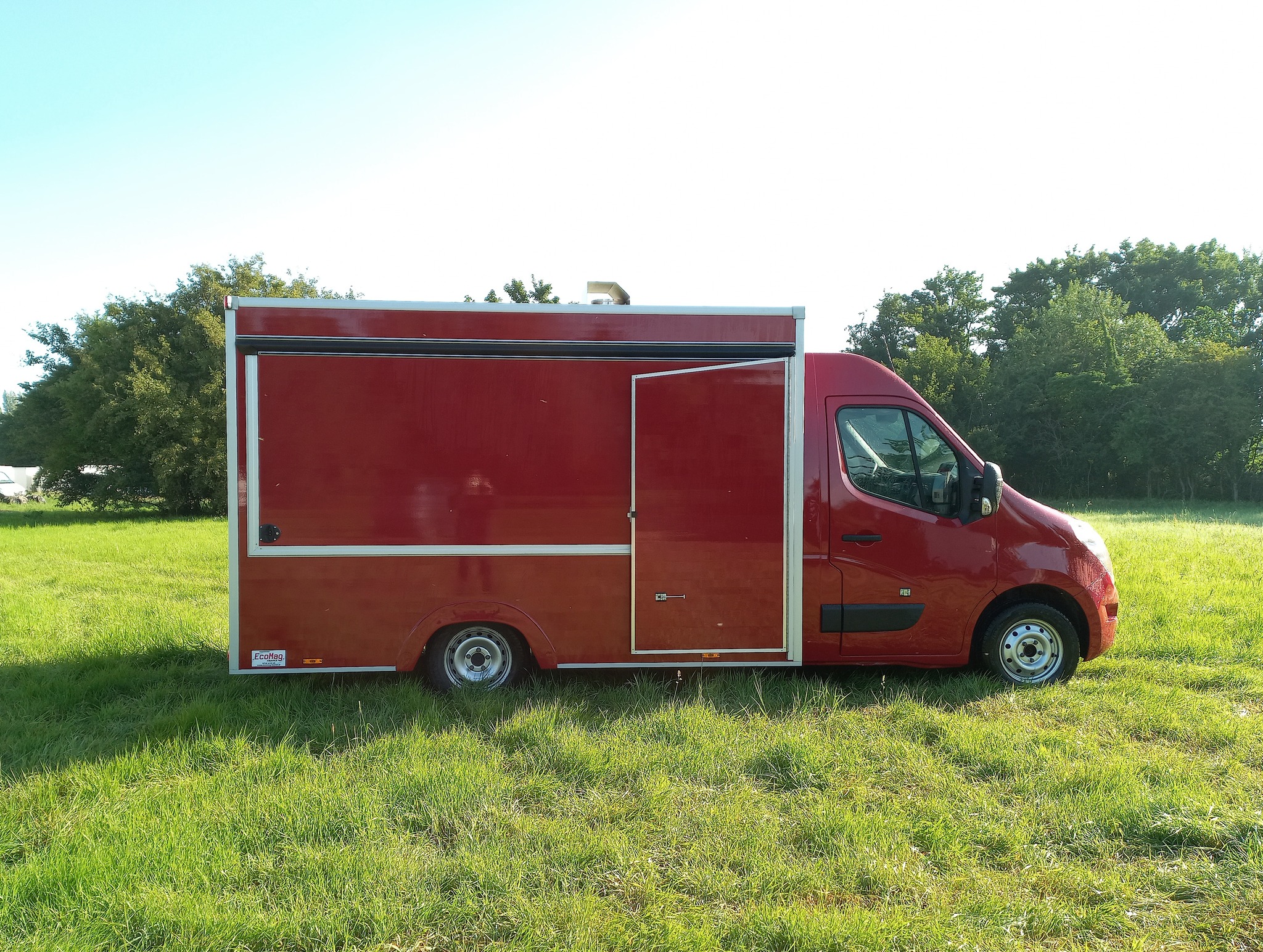 Découvrez ce camion pizza Renault rouge, parfait pour les entrepreneurs de la restauration mobile.