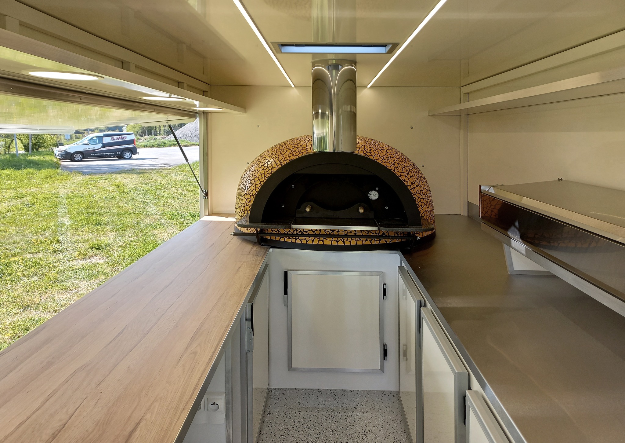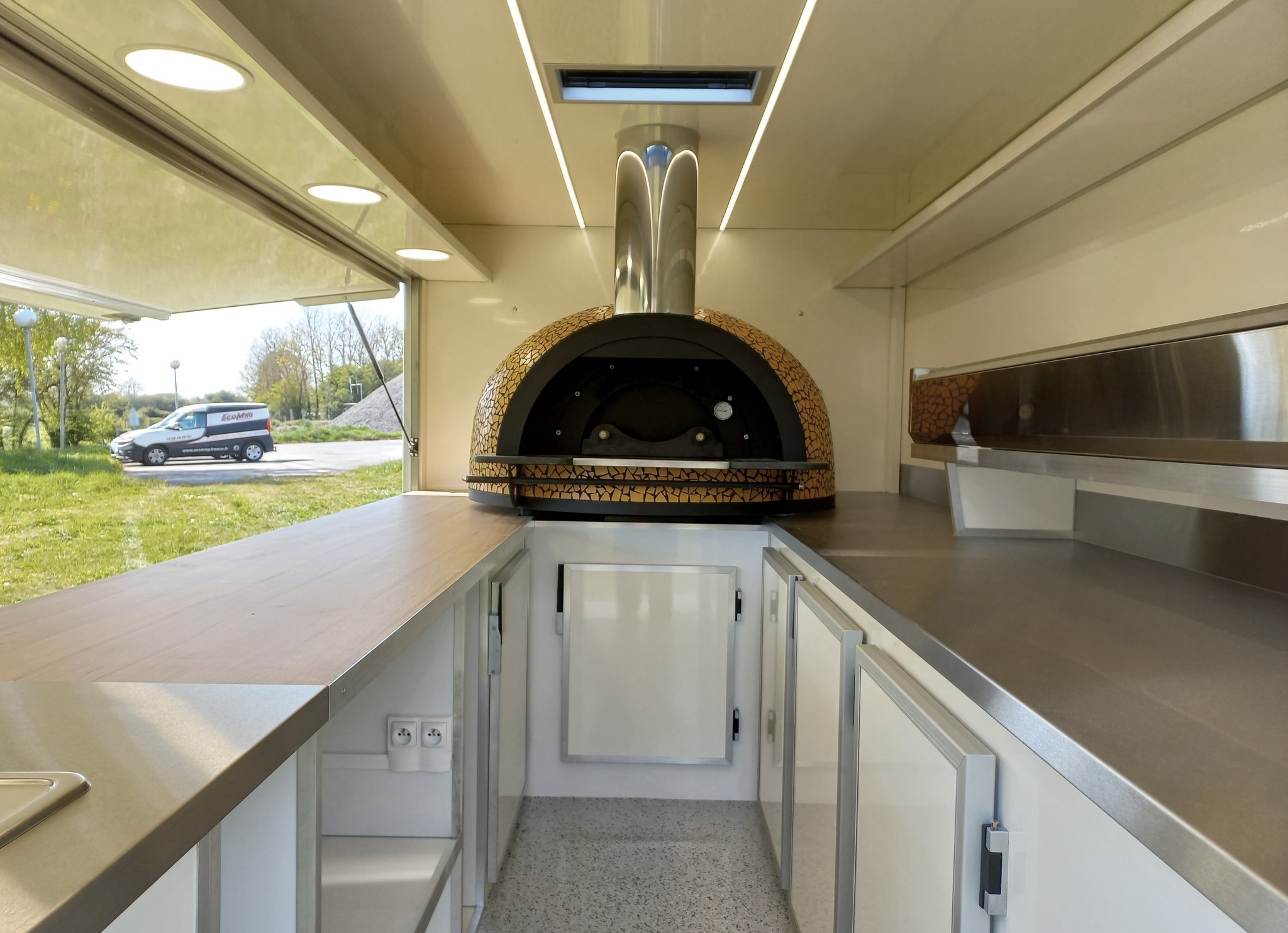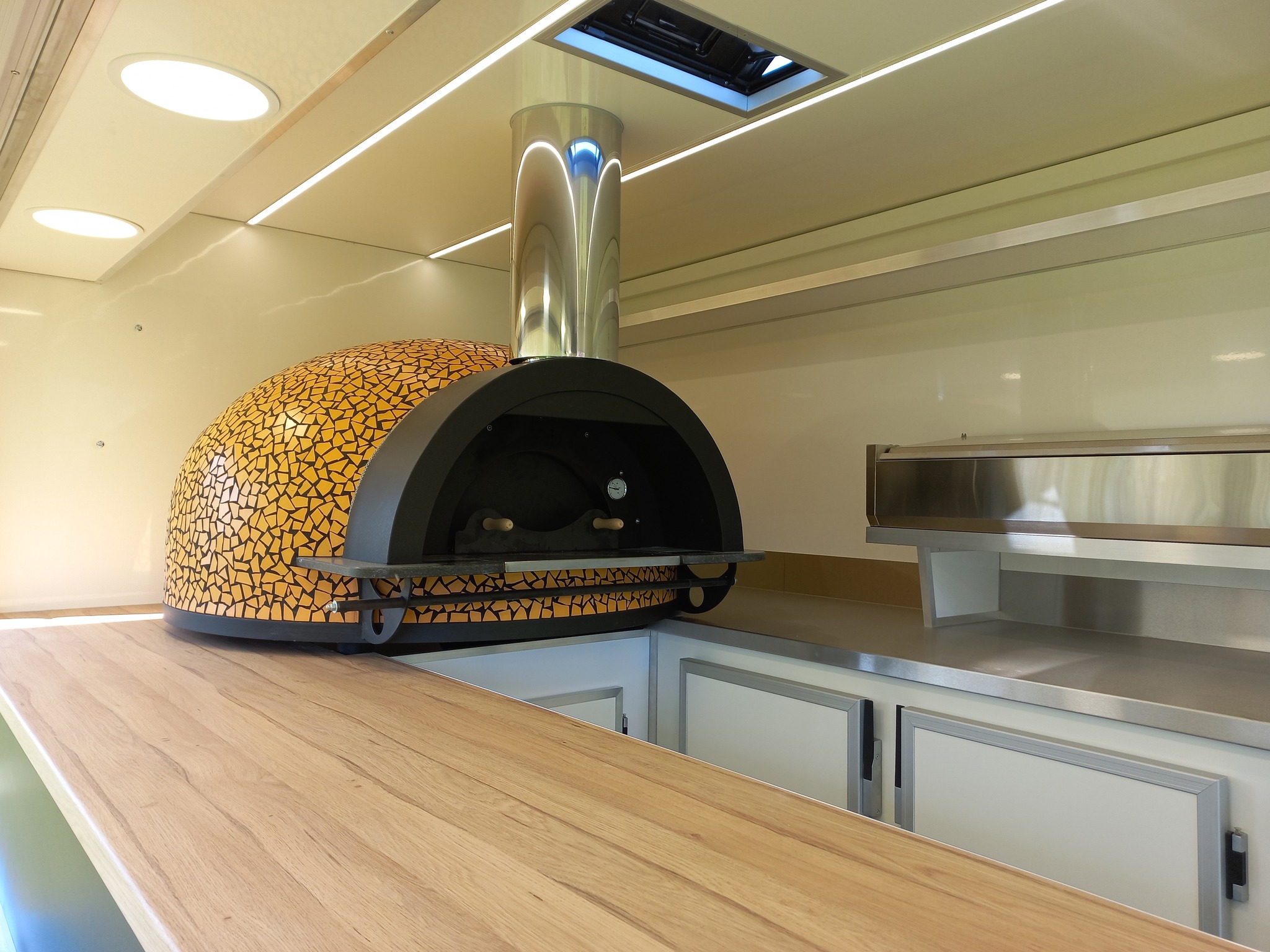 Avec son four intégré, il permet de préparer des pizzas en toute simplicité, directement sur place. Grâce à sa compacité et son moteur diesel, il est facile à déplacer et à installer là où se trouve votre clientèle. Qu’il s’agisse d’un événement ou d’une zone de passage régulière, ce food truck vous permet de cuisiner vos pizzas fraîches en toute efficacité. Prenez l’avantage en étant mobile et adaptable.