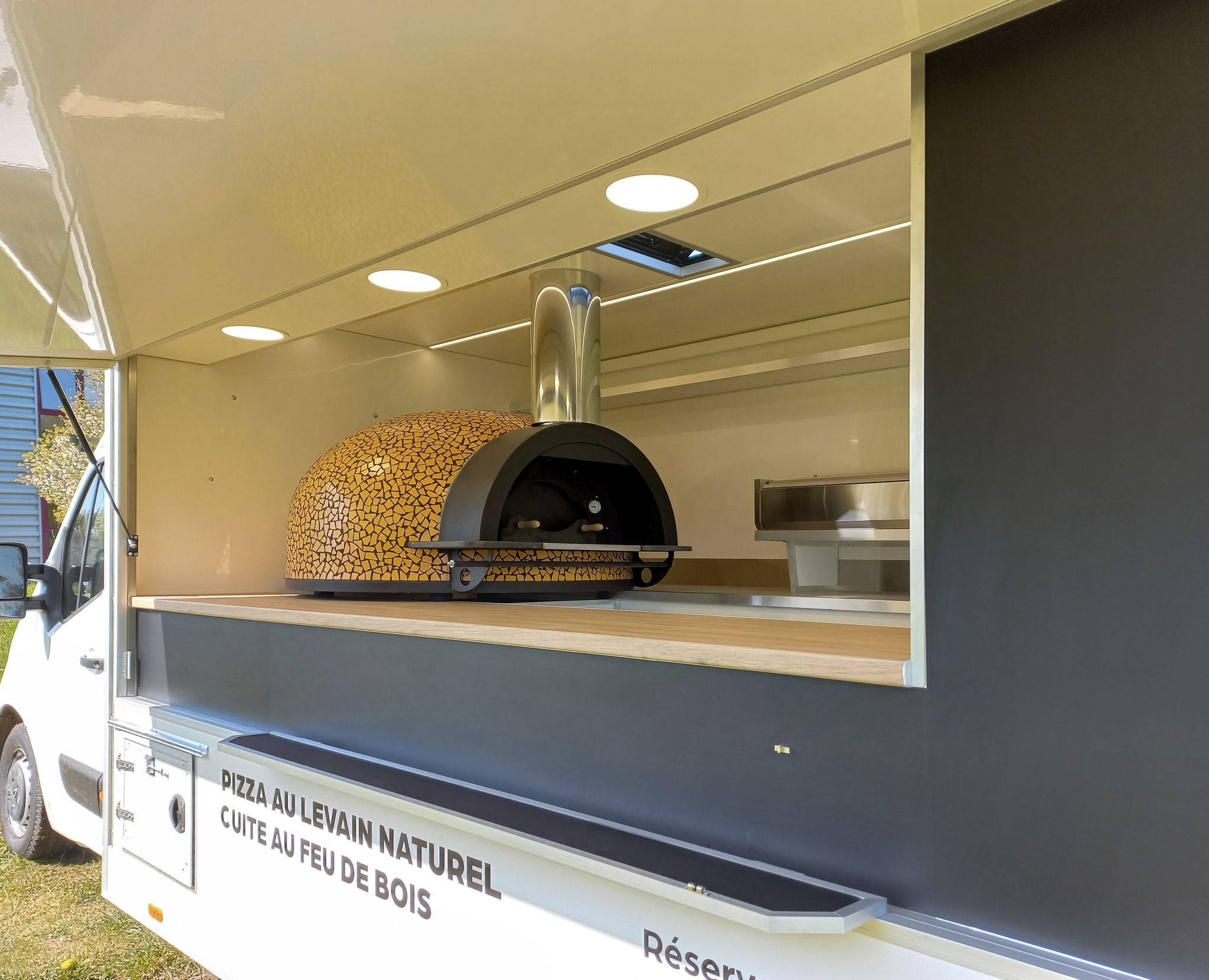 Ce camion Renault pizza mobile est conçu pour répondre aux besoins des restaurateurs souhaitant développer une activité de pizza à emporter.