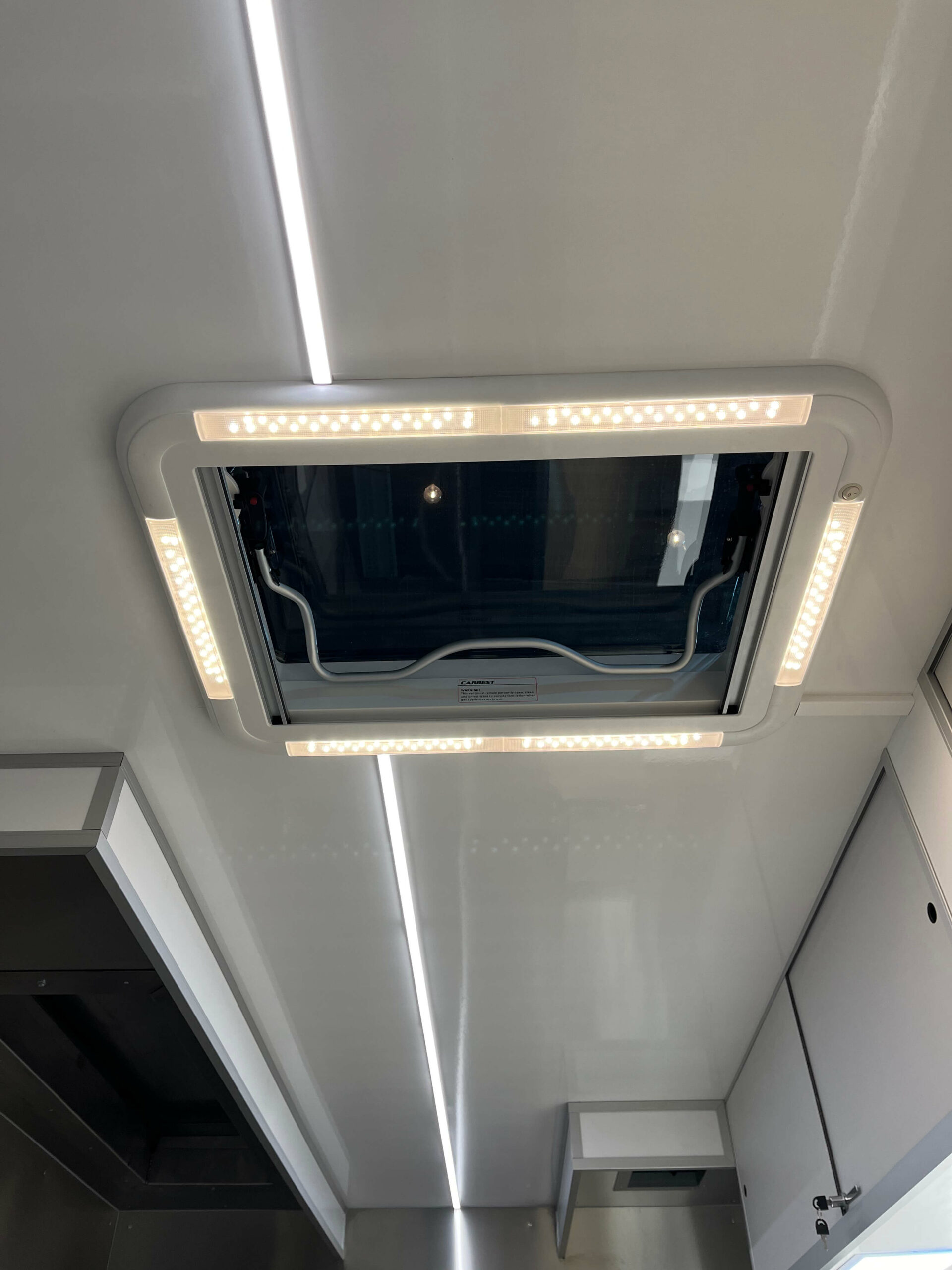 Stockage & Étagères Évier 40x40cm avec réserve d'eau de 13L, pompe à pied (HACCP), dérouleur essuie-tout et distributeur à savon conforme HACCP, chapeau clapet 1m80 x 50 cm, lanterneau de toit XL.