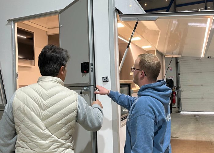 Of course, you’ll need a suitable door on the cell to welcome your customers and their dogs into your vehicle. This door can be on the rear of the cell or on the side, as you wish. You’ll also need a technical box on the outside to store a few accessories, such as cables, without cluttering up the interior.