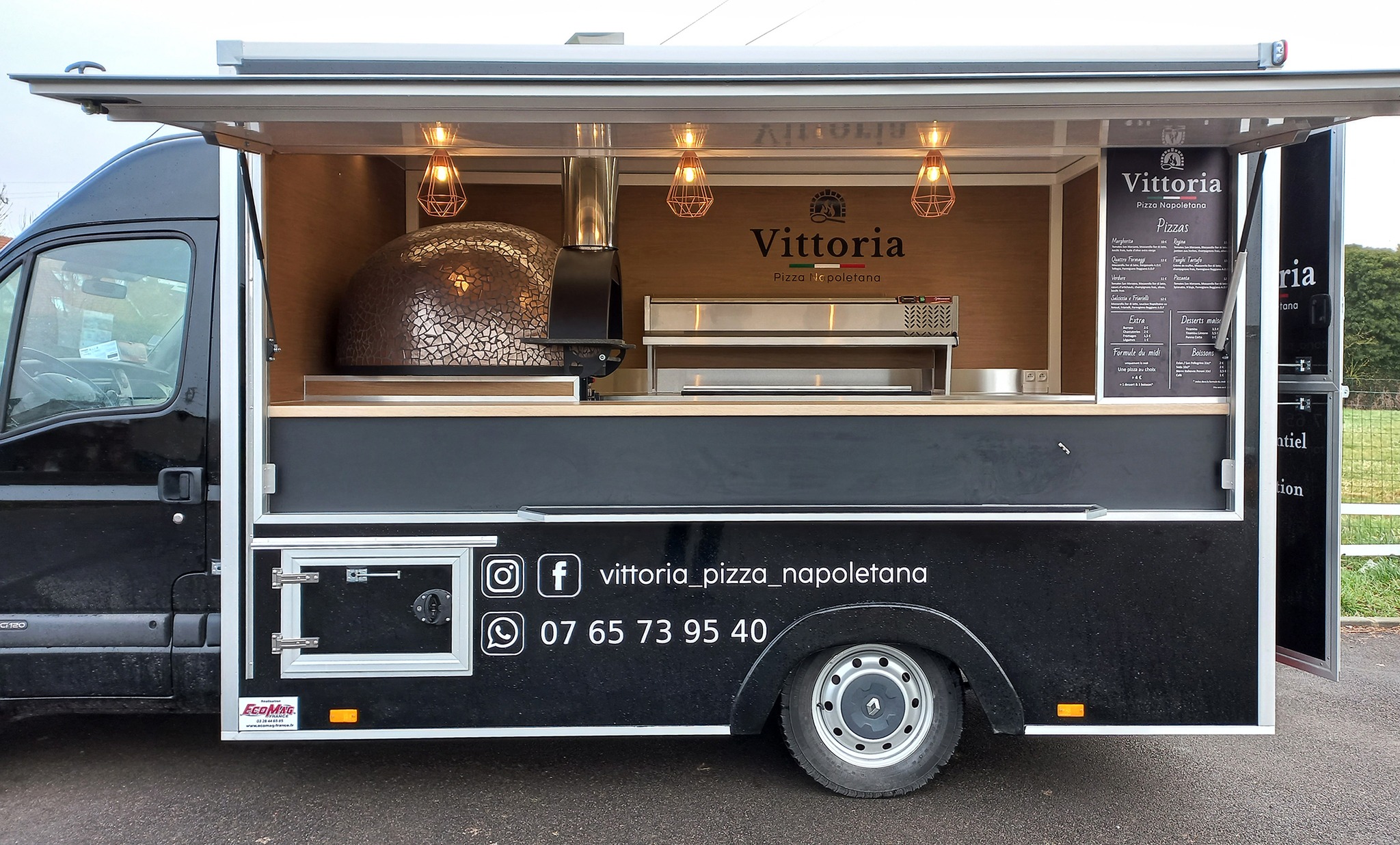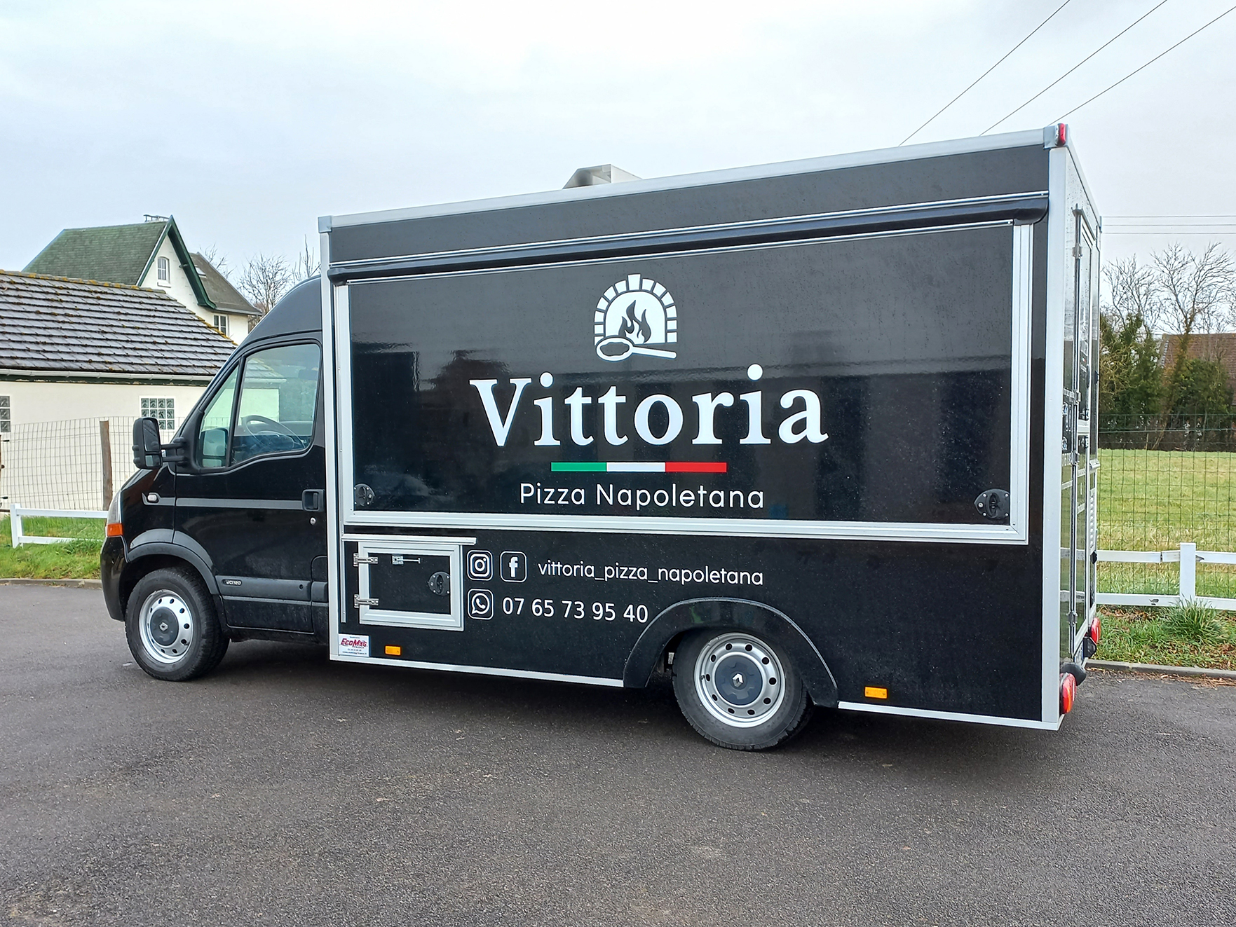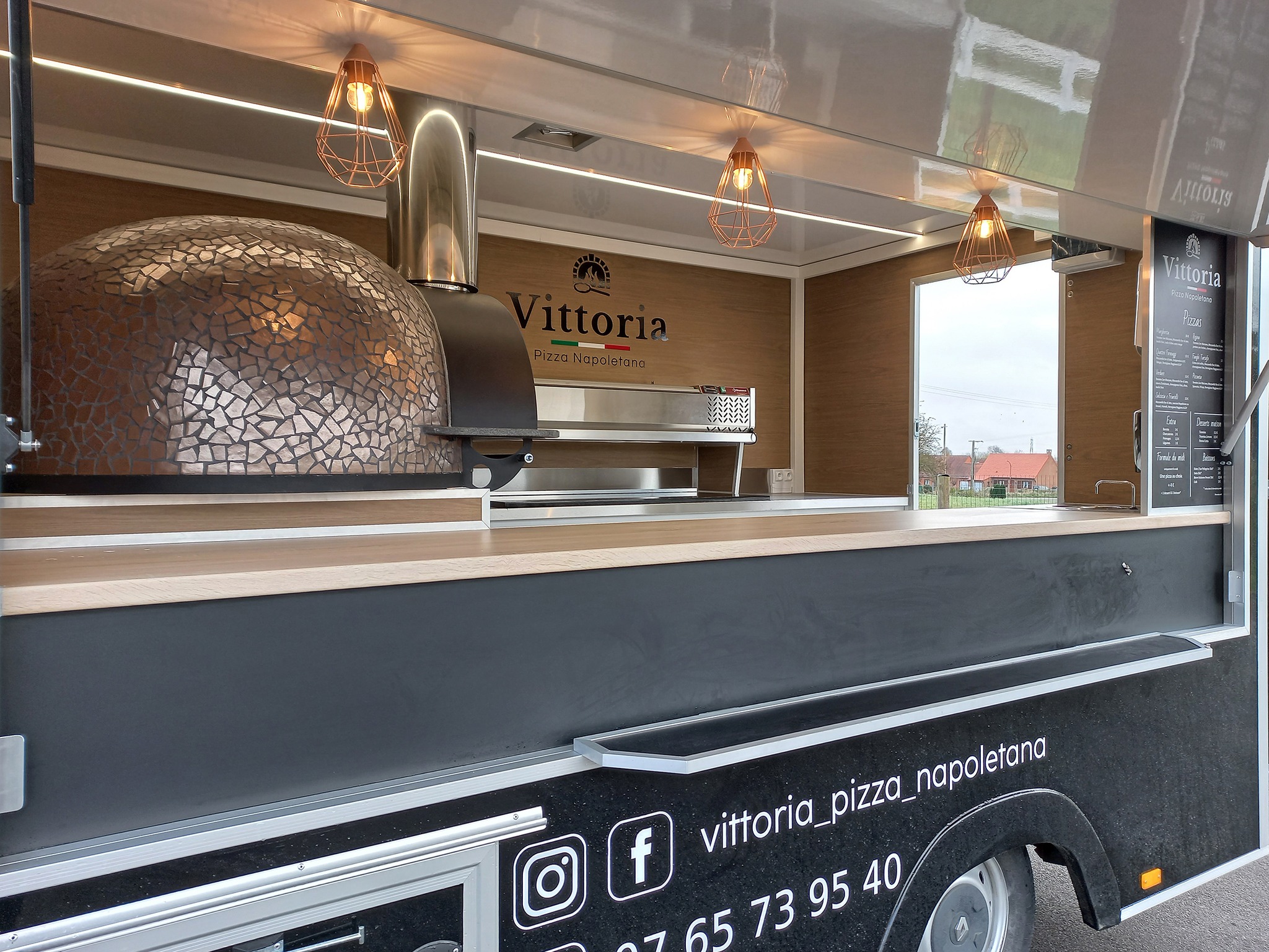 Discover this black Renault pizza truck equipped with a high-performance gas oven, ideal for launching or expanding your mobile catering business. With its optimized worktop and LED lighting, it ensures efficient production while offering ease of use for staff. Attract your customers with its modern, engaging design, then hold their attention with the quality of your pizzas, cooked quickly in a reliable oven. Take action: opt for a ready-to-use, robust and practical vehicle that will make your day-to-day work easier, while maximizing your profitability.